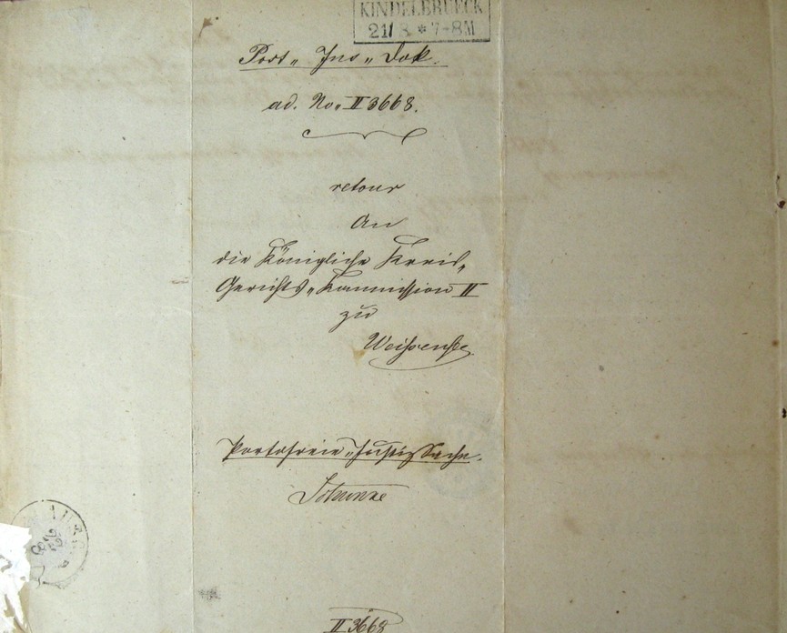 Alter Brief an die Königliche Gerichtskommission in Weißensee