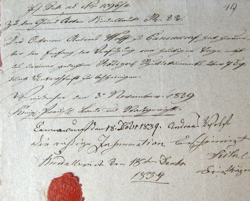 Brief an den Schulzen Voigt zu Cannawurf 1821.